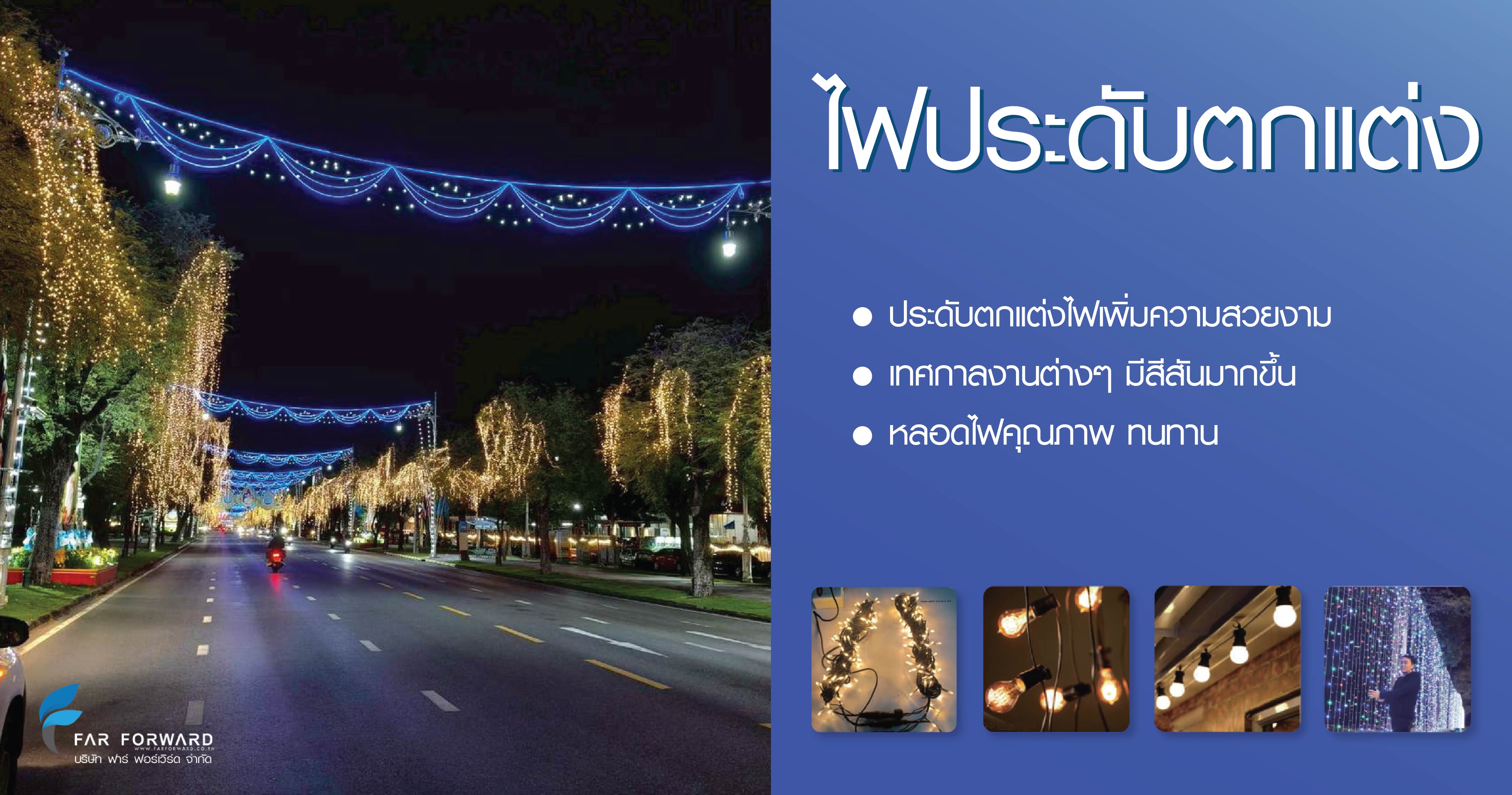 บริษัท ฟาร์ ฟอร์เวิร์ด จำกัด เราเป็นหนึ่งในผู้ชำนาญการด้านงานประดับไฟ, ปรับภูมิทัศน์ ครบวงจร ทั้งออกแบบ ผลิต และติดตั้ง