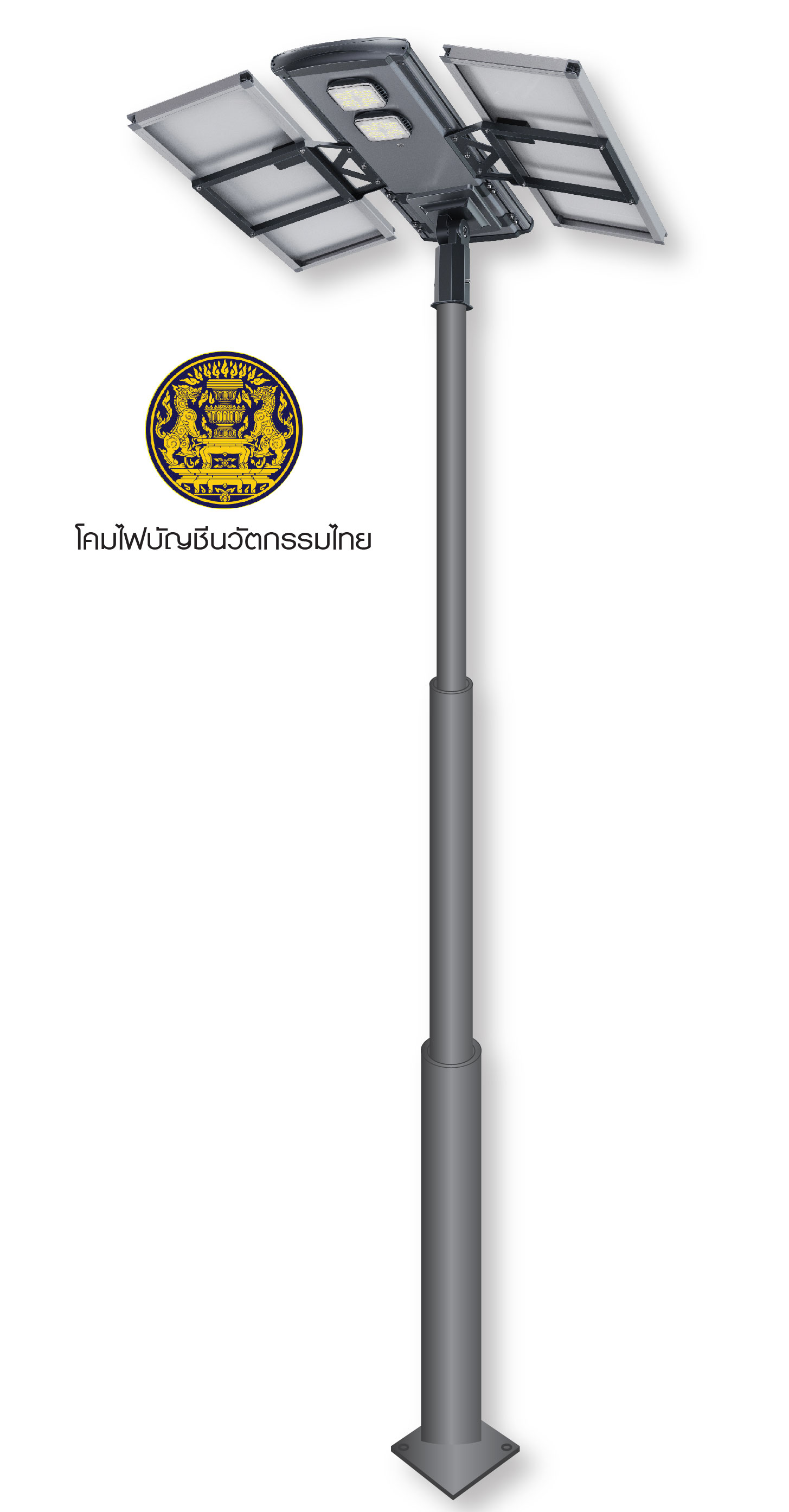 ชุดเสาไฟฟ้าแบบยืดหดได้ พร้อมโคมไฟโซล่าเซลล์ Height Adjustable Pole with LED Solar Cell Street Light ชุดเสาไฟฟ้าแบบยืดหดได้ พร้อมโคมไฟถนนโซล่าเซลล์แบบประกอบในชุดเดียวกัน เป็นโคมไฟส่องสว่างที่มีประสิทธิภาพในการส่องสว่างตามมาตรฐานที่กำหนด โดยประกอบด้วย 3 ส่วนหลัก คือ เสาไฟฟ้าแบบยืดหดได้ ฐานรากคอนกรีตสำเร็จรูป และโคมไฟถนนโซล่าเซลล์ ที่ออกแบบให้ตัวเสาไฟฟ้า สามารถยืดหดได้ด้วยความสูง 6-9 เมตร สามารถรองรับการปรับระดับของเสาไฟฟ้าให้เหมาะสมกับแต่ละพื้นที่หน้างาน เพื่อความสะดวกรวดเร็วต่อการติดตั้ง และปลอดภัยต่อการใช้งาน ออกแบบให้แผงขยายออกด้านข้างเพื่อรับพลังงานแสงอาทิตย์ได้เพิ่มมากยิ่งขึ้น เพื่อให้โคมไฟโซล่าเซลล์ส่องสว่างบนท้องถนนได้อย่างมีประสิทธิภาพ พร้อมทั้งมีอุปกรณ์ควบคุมการทำงาน เปิด-ปิด และบันทึกค่าพลังงานคงเหลือในแบตเตอรี่ ให้ใช้งานได้เต็มประสิทธิภาพ | ![]() |